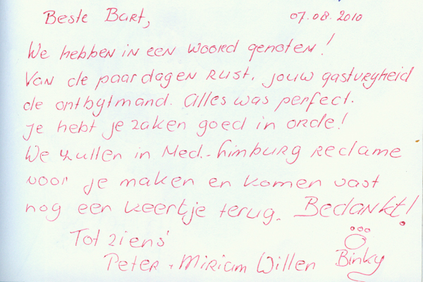 We zullen in nederlands Limburg reclame voor je maken en komen vast nog een keertje terug.