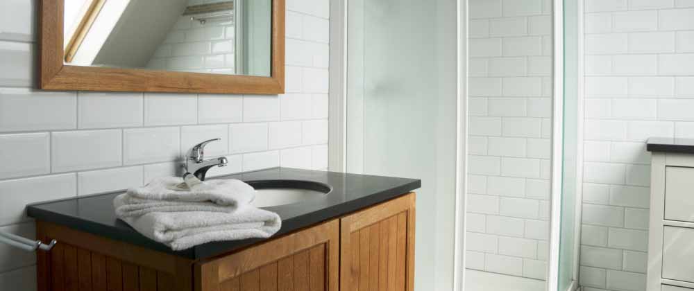 -Eigen badkamer met stortbad, toilet en wastafel...