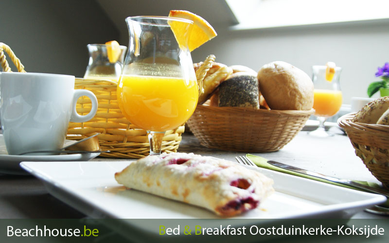 Het ontbijt in beachhouse is elke dag anders en wordt steeds aan de kamer geserveerd.